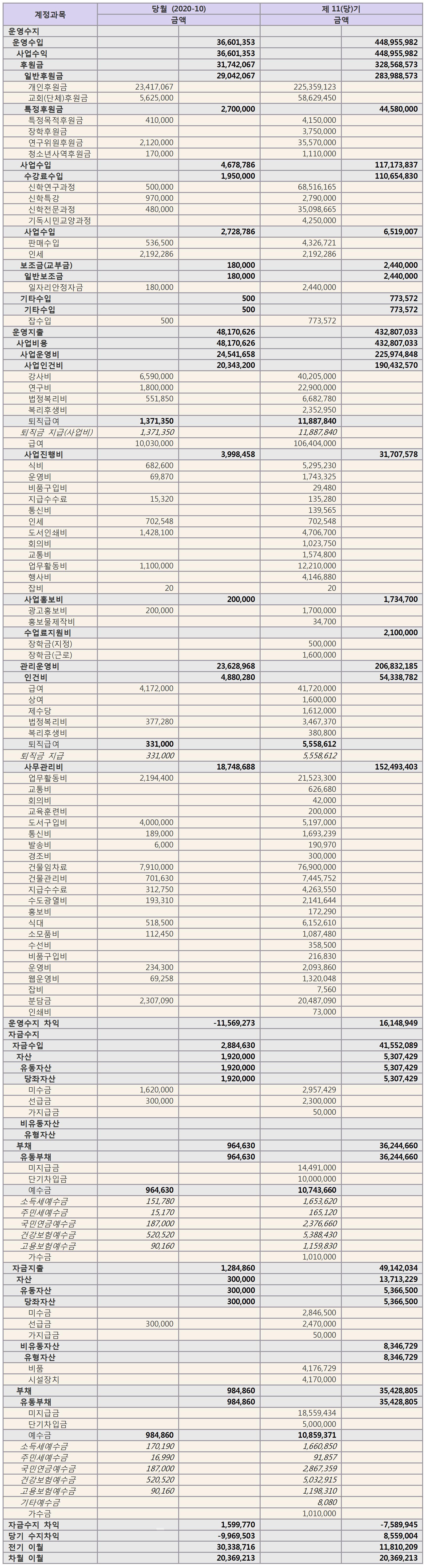 (2) 재무상태표 – 10월말 현재